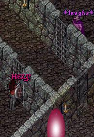 [05/21/2003] Over the past week or so that I've been neglecting writing in here, we've been gathering reagents and so forth, making slow progress. But today some particularly noteworthy things happened.First of all, I was asked today to meet the others at the tower, but as I arrived out front, I felt that the cloaked man was very close to me. Immediately I began casting Reveal spells, and abruptly he started running, revealing himself. I took off after him, chasing him south and almost getting within an arm's reach several times. Nevertheless, somewhere near the nature preserves, he finally managed to Teleport himself around enough times that I lost him. When I returned to the Watcher's Tower, I discovered something else. Soth had told Navien, who informed the rest of us, that he had found a note at the tower where he and Navien have been studying. Soth claimed it was from the cloaked man, warning us to stay out of Felucca. The wording struck me as odd, though, since the word Felucca was shortened to "Fel" and Soth is the only one I know of who does that... Still, regardless of whoever left it, both Soth and Navien warned that the cloaked man is very dangerous and could kill us permanently, bypassing the spirit protections that exist here on Britannia for all humans. I don't know if that "permanently" would include immortals, but at any rate, I agreed that I wouldn't chase the cloaked man anymore. And I will keep that promise. I do, however, fully plan to keep my eyes out for him nevertheless. And Andrella, Navien, Sygil, and I began plotting a trap to catch him... [05/23/2003] Well. I'm writing this from my, erm, jail cell, since I have nothing better to do.Yes, my jail cell. Actually, it's Blackthorn's jail cell. I think it still smells of him. How did I come to be here? Well, it goes something like this... I was at my house, trying to organize my things and chatting with Navien. Suddenly two Chaos guards--no joke--walked up with a very confused-looking Pride following along. The guards immediately said I was under arrest by the "king" and told me to drop my bow. Well, naturally, I refused, and Navien and I asked them over and over what the charges were and who this "king" was, but they dodged answering any of our questions and just kept insisting that I disarm and go with them. I didn't want the deal to escalate into bloodshed, so I put my bow away in the bank. "All right, there," I told them. "Now what is going on here?" I was never really able to finish speaking the words, because abruptly I found myself standing in Yew Jail, in the same cell that had once held Blackthorn. Of all the nerve. Navien fetched his brother Adweigan, but shockingly--and rather alarmingly--the Chaos guards were able to relieve him of his duty as Warden. Adweigan found that his axe no longer held its Warden powers, and he wasn't able to do anything to help me. We complained at the guards, who finally told us that the king was...Blackthorn. In fact, one guard even went so far as to say that Blackthorn had "returned only hours ago." What is going on here? Not only that, but they revealed that Garn is coming back--joy--and also that my "crime" was plotting to destroy the kingdom. As if! If anyone, they should be jailing Soth or Blackthorn for that, not me... And stupid me hadn't even had the chance to eat supper before they'd jumped me. My stomach was growling, but when I asked for food, the guard said they were under orders to starve me. Uh huh. I'll bet this is Blackthorn's bad idea of revenge. Well, I wasn't about to put up with that. As soon as the guards had left, I cast a Create Food spell and made myself some sausage. Recall and Gate Travel and any other more useful spells don't work here--I've tried, believe me--but at least I can get food. The good side is, I still have all of my other items besides my bow--they never did disarm me. The bad news is, the guards said plain as day that they are going to jail Andrella, Connor, and Sygil as well. Navien promised me he would warn them to remain hidden so that they do not end up in the same fix I'm in. I only hope he finds them before the Chaos guards do... Walter, Pride, Navien, and I spent some time trying to figure out a way to get me out of the cell. Magic wasn't working, and though I've found what I think is a secret door at the back of the cell, I've yet to figure out how to open it. As it is, I was caught somewhat unprepared. Well, I always carry items with me to try to be prepared for anything, but since I'd been putting away my things at my house when they'd caught me, I didn't quite have ideal equipment. For one, I'm running low on reagents, and if I waste them all on food, I won't have much left for anything else. This is not good. And if the cloaked man really is Blackthorn... Before he left, the guard mentioned that Blackthorn would come by tomorrow. I suppose if I don't figure out something before then, I'll just have to wait here until Blackthorn comes around, and then I can give him a piece of my mind... [05/24/2003] This is going from bad to worse.This morning when I woke up, I spent many lonely hours poking at bricks in my cell's walls and feeding myself with Create Food spells. I was down to about 5 castings left so I was trying to preserve my reagents. At some point during the morning, my brain finally started working, and I remembered I still had my bag of holding on me. This presented possibilities, and I realized I needed to speak with Navien to hatch a plot for my escape. As I was planning this, Andrella spoke some greetings over the global telepathy. "Ack!" I sent immediately. There was no sign of Navien, who had promised to warn her. "Andrella, hide!" She was naturally confused, but I entreated her to stay away from Chaos guards. I figured it didn't matter at this point if they could hear me. Since the guards had found me so quickly after I'd told Navien over global telepathy last night to meet me at my house, they probably were alre